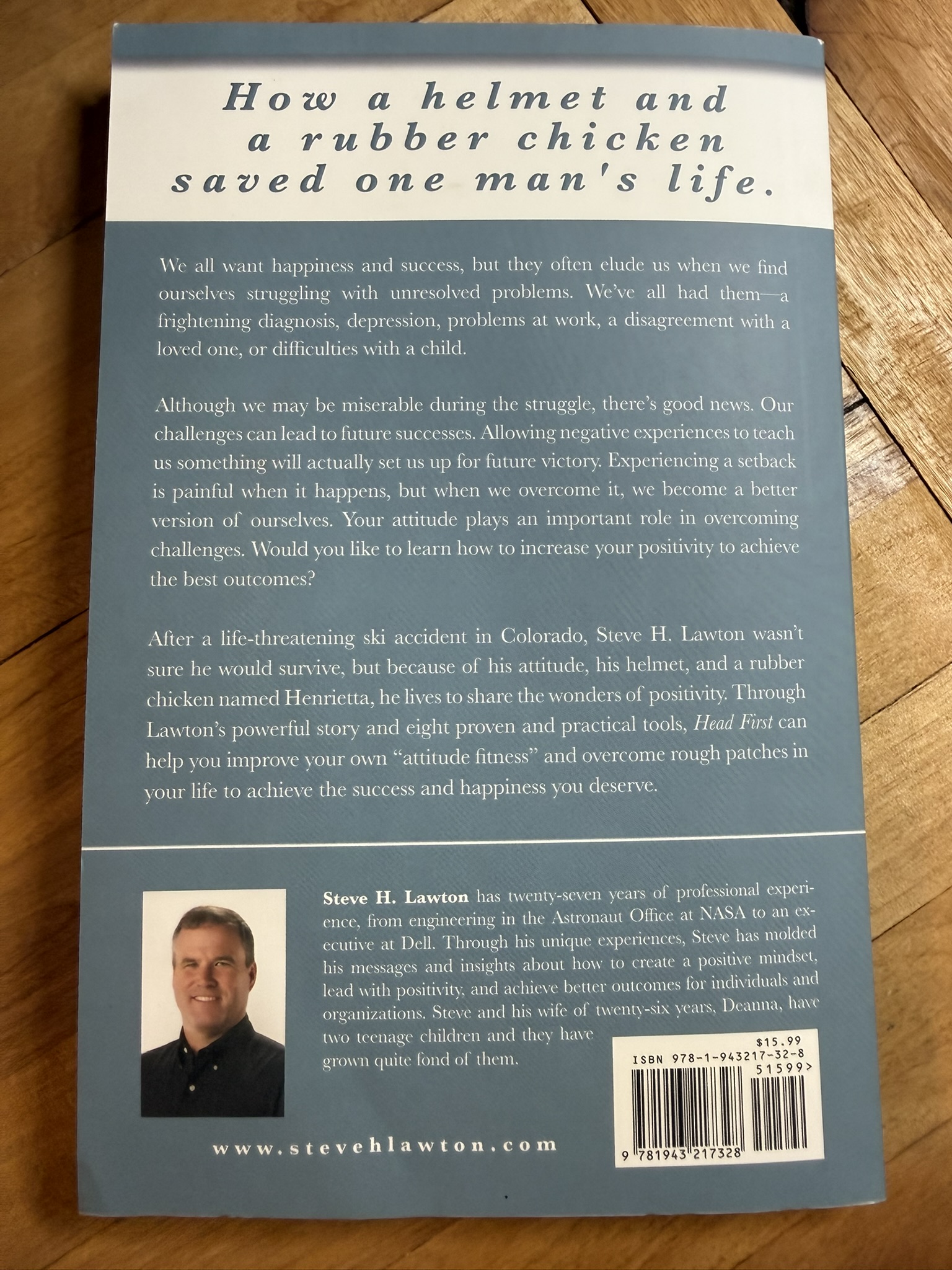 After a life-threatening ski accident in Colorado, doctors weren’t sure Steve H. Lawton would survive, but because of his attitude, his helmet, and a rubber chicken named Henrietta, Lawton lives to share the wonders of positivity. Through Lawton s powerful story and eight proven and practical tools, Head First can help you improve your own attitude fitness and overcome the rough patches in your life to achieve the success and happiness you deserve.